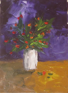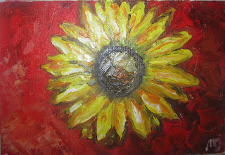 I thought of challenging myself a little with painting sunflowers- which I love! with palette knives. This technique allows you to paint quite quickly and it's so much fun!